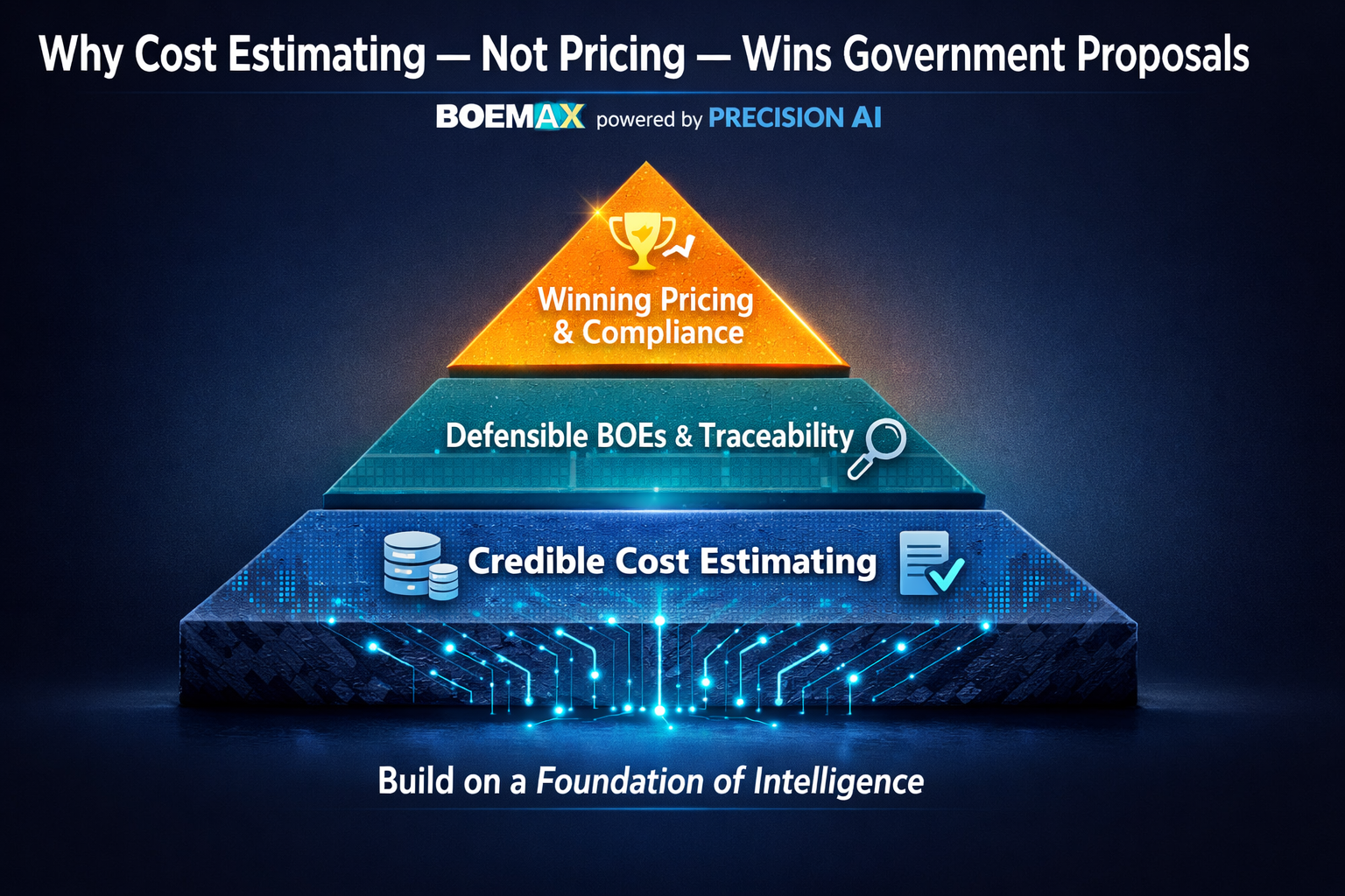 BOEMAX powered by Precision AI doesn’t just help teams submit compliant proposals. It helps them build better estimates, stronger BOEs, and more competitive offers—again and again.